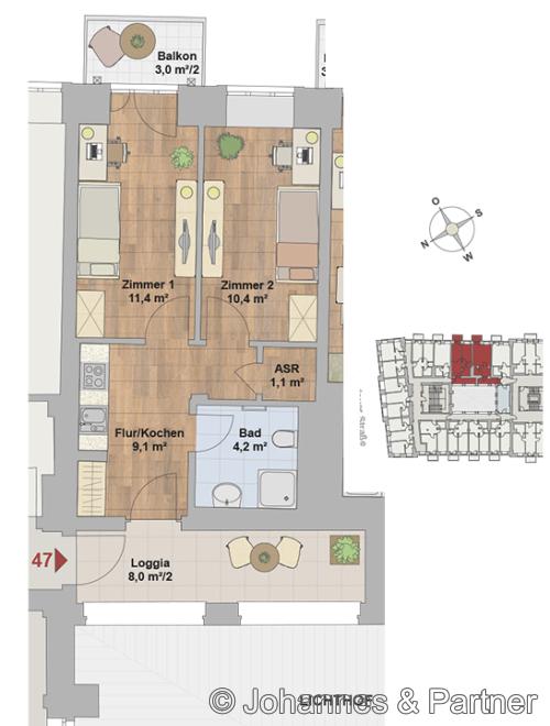 Im Herzen von Striesen-Ost, einer der gefragtesten Wohngegenden von Dresden, befindet sich im denkmalgeschützten Gebäude der Historischen Tabakfabrik diese schöne 2-Raum- Wohnung mit ideal durchdachtem Grundriss, auch geeignet für Wohngemeinschaften. Die Außenanlagen sind zeitgemäß und freundlich angelegt, mit Spielplatz und Sitzgelegenheiten und fügen sich harmonisch in das Gesamtbild ein. Angaben aus dem Energieausweis: Baujahr:1912/ 2023 Objektzustand: neuwertig Die Wohnungen gleichen im Wesentlichen dem Grundriss der hier abgebildeten Ansicht! Der Grundriss ist nicht maßstabsgetreu, die Raumgrößen sind beispielhaft u. können geringfügig variieren. Die Wohnung kann spiegelverkehrt sein. Die abgebildete Möblierung stellt lediglich einen Vorschlag dar und ist nicht Leistungsbestandteil.