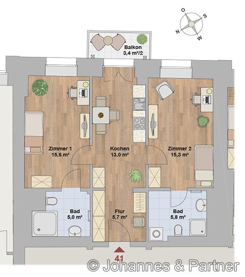 Im Herzen von Striesen-Ost, einer der gefragtesten Wohngegenden von Dresden, befindet sich im denkmalgeschützten Gebäude der Historischen Tabakfabrik diese schöne 2,5-Raum- Wohnung mit ideal durchdachtem Grundriss, auch geeignet für Wohngemeinschaften. Die Außenanlagen sind zeitgemäß und freundlich angelegt, mit Spielplatz und Sitzgelegenheiten und fügen sich harmonisch in das Gesamtbild ein. Baujahr:1912/ 2023 Objektzustand: neuwertig Die Wohnungen gleichen im Wesentlichen dem Grundriss der hier abgebildeten Ansicht! Der Grundriss ist nicht maßstabsgetreu, die Raumgrößen sind beispielhaft u. können geringfügig variieren. Die Wohnung kann spiegelverkehrt sein. Die abgebildete Möblierung stellt lediglich einen Vorschlag dar und ist nicht Leistungsbestandteil.