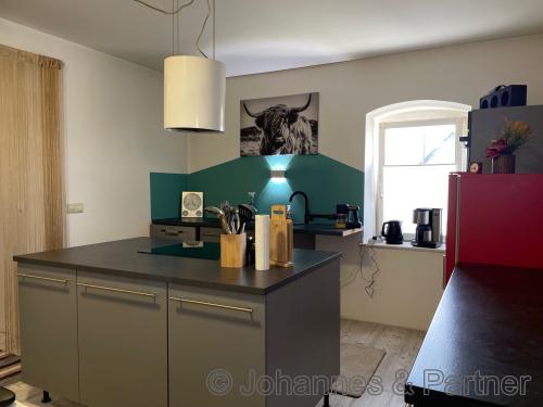 Im Erdgeschoss befindet sich der Flur und die Wohnküche, sowie ein WC mit Waschmaschinenstellplatz und Fenster.