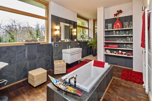 Individuelles und sehr hochwertiges Architektenhaus in ruhiger und grüner Bestlage (leichte Höhenlage) von Meißen mit folgender Ausstattung: * wunderschöne leichte Höhenlage mit herrlichem Blick Das Haus verfügt momentan über 3 Zimmer plus Ankleidezimmer plus Arbeitsbereich, es könnte jedoch mit geringem baulichen Aufwand ein abgeschlossenes 4.Zimmer erzeugt werden. Die Heizung ist eine Luft-Wärme-Pumpe, also energetisch sehr sparsam, hochwertig und zukunftsorientiert. Weitere Informationen und Grundrisse und Besichtigungen gerne auf Anfrage. Energieausweis: Der Energieausweis ist in Erstellung