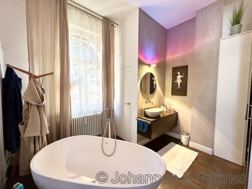 Exklusive Wohnung mit 263 m² in aufwendig sanierter, denkmalgeschützer Villa in ruhiger und grüner Bestlage von Dresden-Loschwitz am Elbhang! Helle Villen-Etage mit folgender Ausstattung: * hochwertige Sanierung in Bestlage von Dresden-Loschwitz Dieses Angebot besteht aus zwei Wohnungen im Haus, siehe hier die ID´s 6637 und 6638. In Kombination ist dieses Angebot perfekt geeignet auch für einen separaten Gäste-Bereich, für größere Kinder oder zum Arbeiten. Weitere Informationen und Besichtigungstermine gerne auf Anfrage. Energieausweis: Das Objekt unterliegt nicht den GEG-Anforderungen